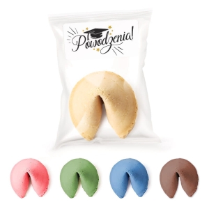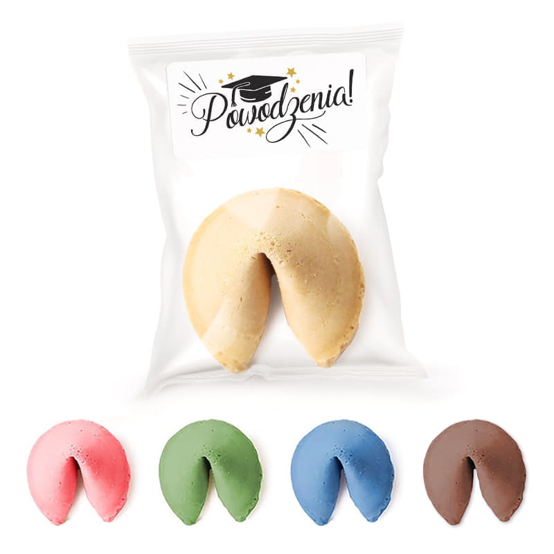 Ciasteczko z wróżbą wyprodukowane w Polsce, o kształcie półksiężyca. Wykonane z delikatnego i kruchego ciasta o lekkim posmaku herbatnika. Każde zawiera karteczkę z wróżbą i jest jednostkowo pakowane w przezroczyste opakowanie, do którego dołączymy samoprzylepną etykietę przygotowaną specjalnie z okazji zakończenia roku szkolnego lub akademickiego! Każda wróżba jest pozytywna i dobrze wróży!