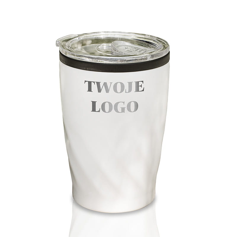 Elegancki kubek termiczny, który można spersonalizować logo firmy, to idealne połączenie funkcjonalności z nowoczesnym wzornictwem. Wykonany z wysokiej jakości stali nierdzewnej i wyposażony w podwójną izolację, zapewnia trwałość oraz doskonałą izolację cieplną, utrzymując napoje zarówno gorące, jak i zimne przez długi czas. Jego wyjątkowa dolna część z wypukłymi, falistymi załamaniami nadaje mu niepowtarzalnego charakteru, podczas gdy gładka góra stanowi doskonałe tło dla personalizacji, nadając kubkowi indywidualny i profesjonalny wygląd.
