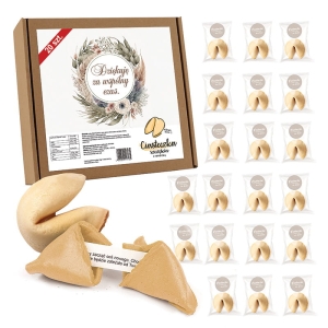 - Uwaga! Ze względu na elektryzowanie się papieru, bardzo sporadycznie może się zdarzyć, że wewnątrz ciasteczka znajdą się dwie karteczki z wróżbą lub w jakimś ciasteczku będzie brak wróżby.